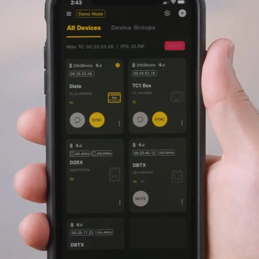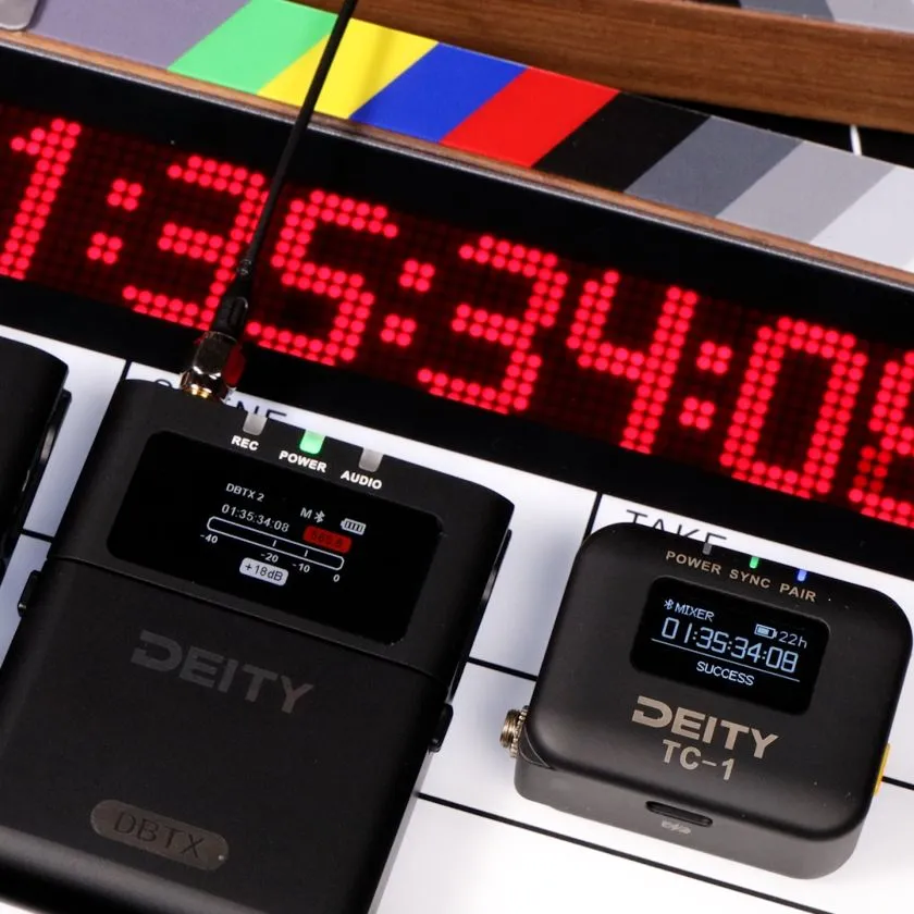 A Theos legkülönlegesebb tulajdonsága, hogy az adó natívan képes vezeték nélkül szinkronizálni a Deity TC-1 timecode generátorról. A timecode biztosítja, hogy a tartalék WAV fájlok utómunka közben szinkronban legyenek a master fájloddal. Ez a funkció különösen hasznos azoknak az alkotóknak, akik több kamerával vagy eszközzel dolgoznak. Biztosítja, hogy a hang- és videófájljaid tökéletesen szinkronban legyenek, így az utómunka sokkal gördülékenyebb. Alternatívaként a DBTX szinkronizálható a 3,5 mm-es csatlakozón keresztül is, ha harmadik féltől származó timecode generátort használsz.