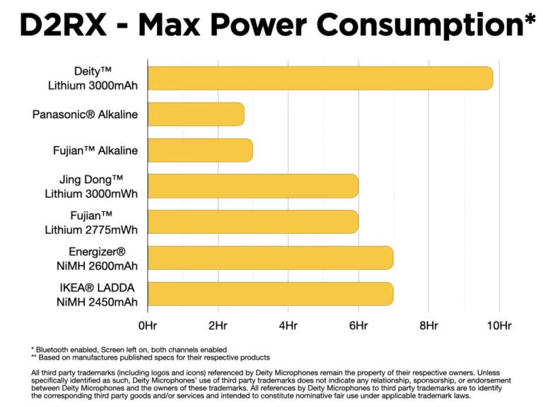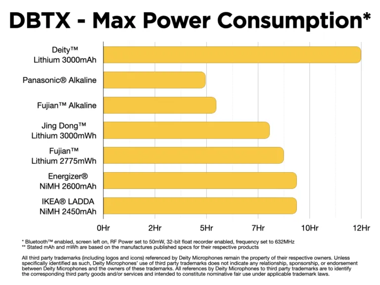 A Theos digitális vezeték nélküli rendszer akár 14 óra* üzemidőt képes elérni, ha 3000 mAh-s Deity AA elemmel használod.