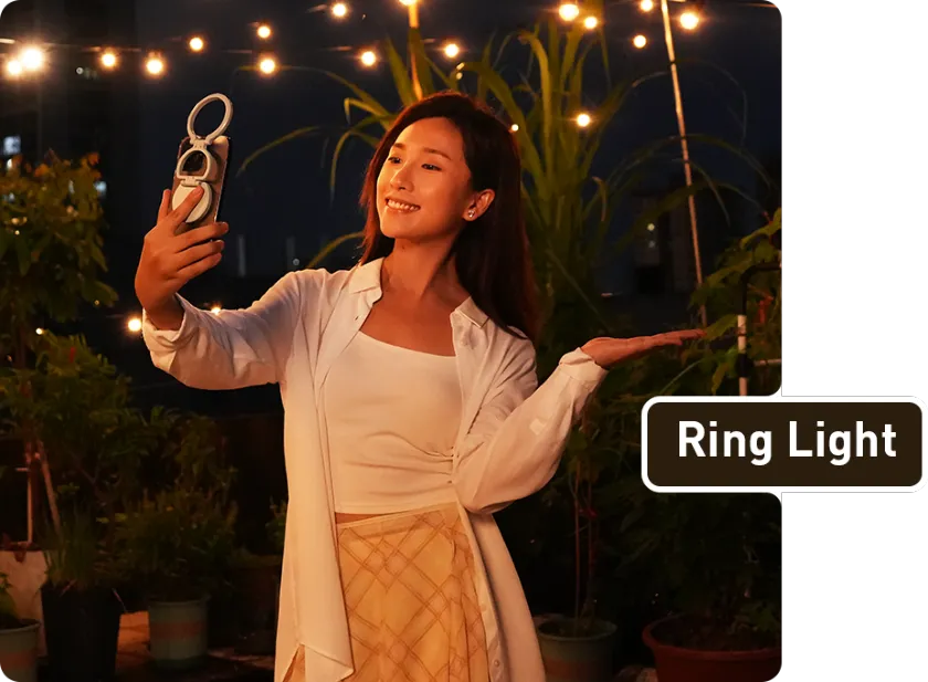 A lumo MagSafe-kompatibilis, beépített akkumulátorral rendelkezik, és olyan összecsukható kialakítása van, amely azonnal telefonállvánnyá vagy markolattá alakítja. Gyönyörű, lágy körfényt, valamint a szemekben finom fénycsillanást hoz létre. A lumóval mindig készen állsz a fotózásra, a ragyogásra és a megosztásra.